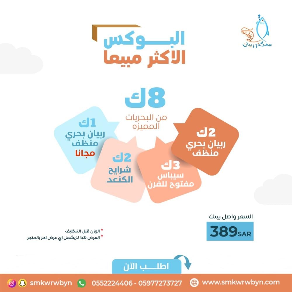 "🇸🇦 عروض اليوم الوطني وصلت 🇸🇦 🇸🇦 🇸🇦 بوكسات بحرية طازجة تبدأ من 291 ريال فقط! 🚚✨"